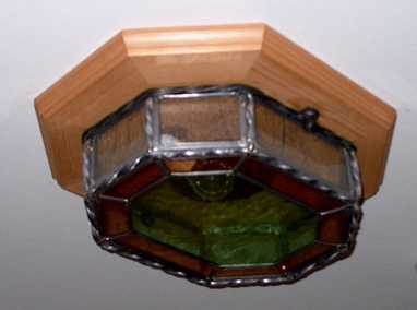 Modell Brixen Deckenlampe 8 Eckig aus echt Antik Glas, modernes Design Bleistärke 7 mm mit gedrehten Bleistägen, Auf Holz Grundplatte mit Fräsung Befestigt mit geschmiedeten Eisenrahmen Lampenfassungen aus Kupfer inkl. 230 Volt Beleuchtung. länge ca 45 cm breite ca 35 cm Höhe 20 cm